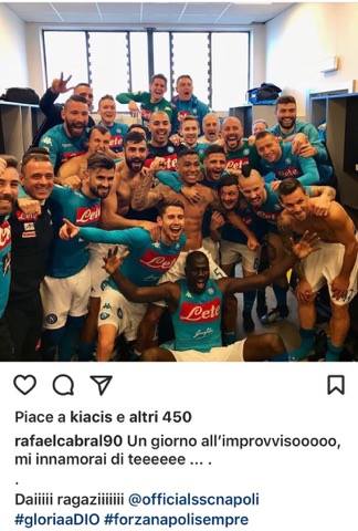 Tanti i post social dei calciatori azzurri dopo la splendida vittoria in casa dell’Atalanta.