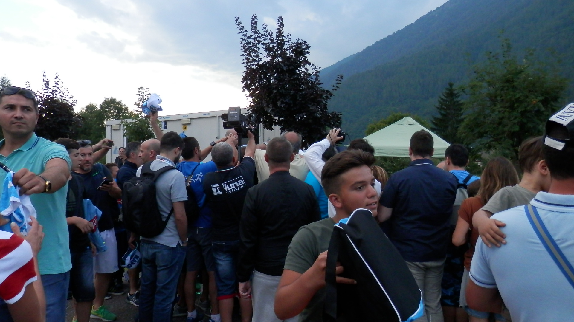 Al termine della seduta pomeridiana di allenamento nel terzo giorno di ritiro a Dimaro Folgarida, i calciatori del Napoli Pavoletti e Chiriches si sono fermati con i tifosi per firmare autografi e scattare qualche foto.