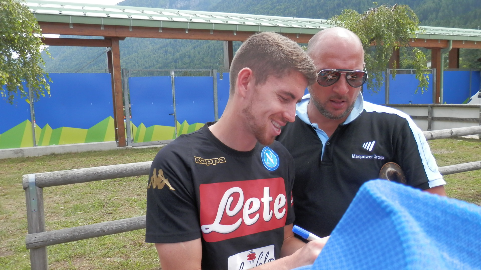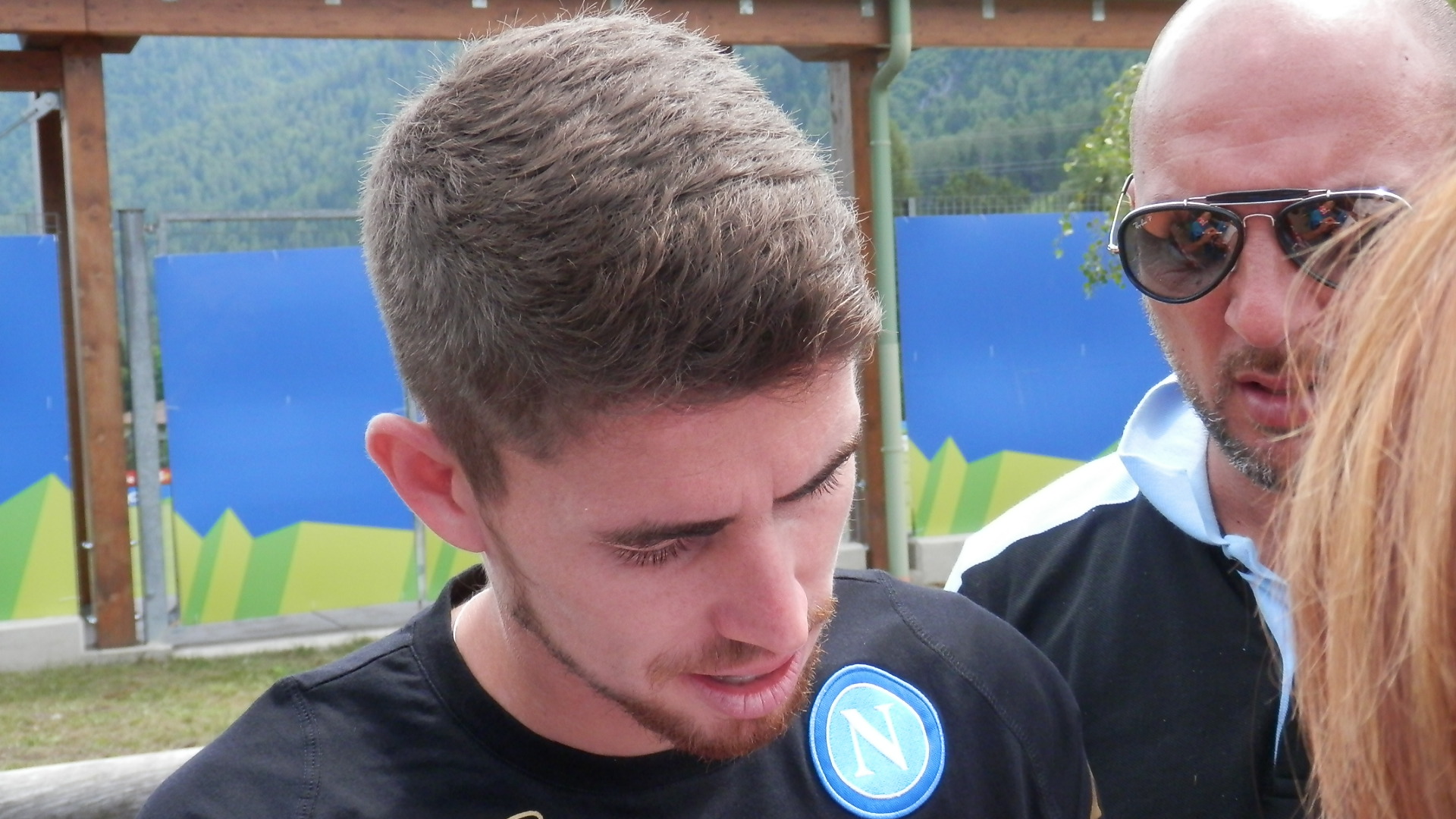Al termine della seduta mattutina di allenamento del settimo giorno di ritiro a Dimaro Folgarida, i calciatori del Napoli Duvan Zapata e Jorginho si sono fermati a firmare autografi e a scattare fotografie con i tifosi.
