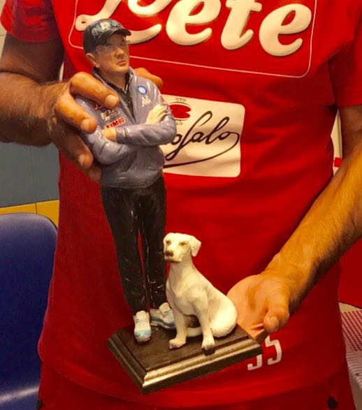 Poi una statuetta di Sarri con il suo bel cane napoletano Ciro che gli darà forza e amore maggiore di quanto gli diamo noi Tifosi.