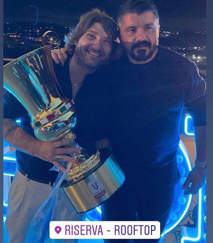 Nella splendida cornice del Riserva-Rooftop di Via Manzoni, i calciatori e le rispettive compagne si sono ritrovati, insieme a tutto lo staff, per celebrare il successo dell’Olimpico, che è valso la sesta affermazione nella coppa nazionale. Ecco alcune foto della serata: