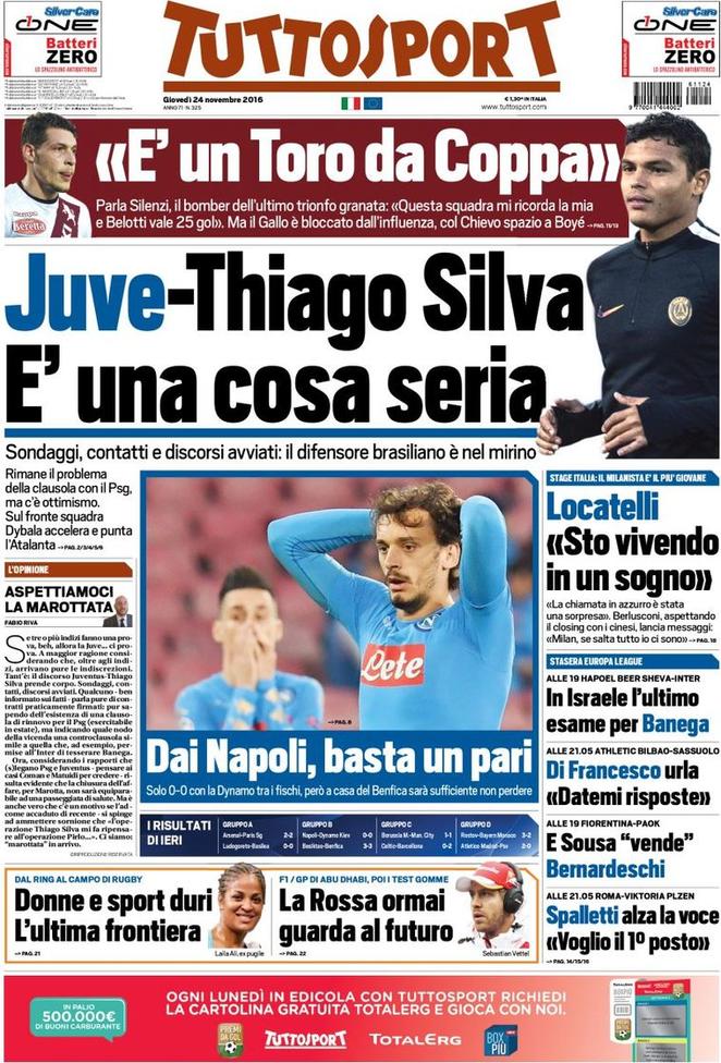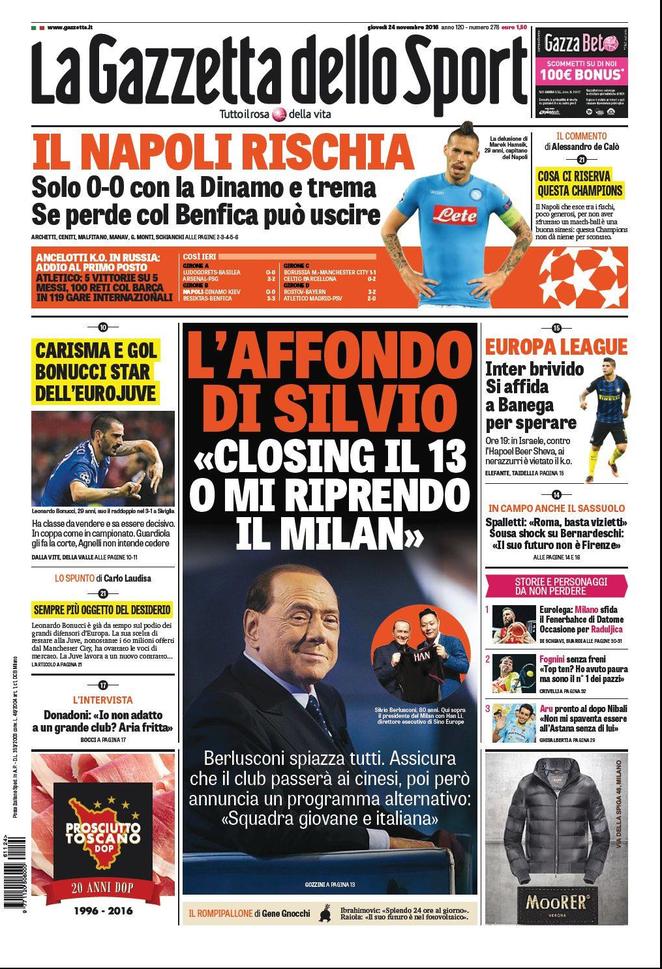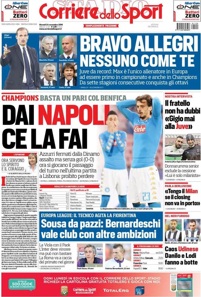 Il passo falso del Napoli di ieri sera è il grande protagonista delle prime pagine odierne.
