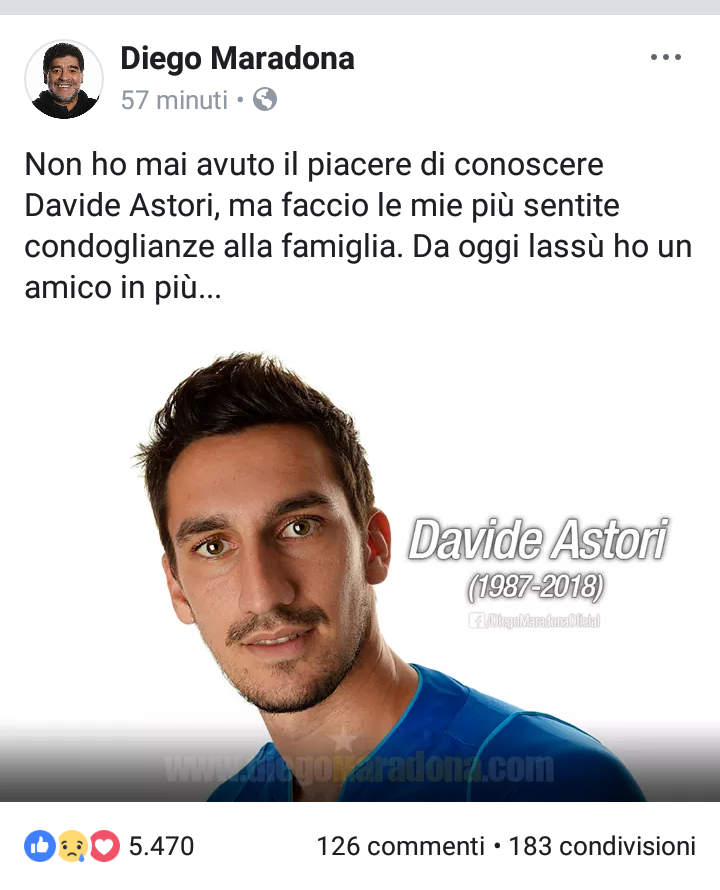 Maradona omaggia Astori: “Da oggi ho un amico lassù”