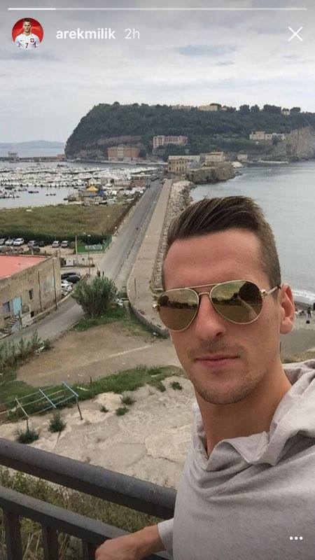 Milik, dopo il lavoro svolto a Castel Volturno, ha pensato bene di girare un po’ per Napoli. Ecco la foto postata dal giocatore su Instagram