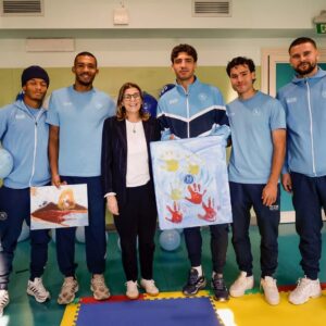 Ma anche i piccoli pazienti hanno voluto fare un regalo ai giocatori: due quadri realizzati in un percorso laboratoriale proprio in vista di questo incontro speciale. L’arrivo dei campioni azzurri è stato accolto da sorrisi, emozione e qualche sguardo incredulo: per molti bambini, abituati a vedere i loro beniamini solo in TV o allo stadio, ritrovarseli accanto è stato un momento speciale, capace di alleggerire per qualche ora il peso della degenza.